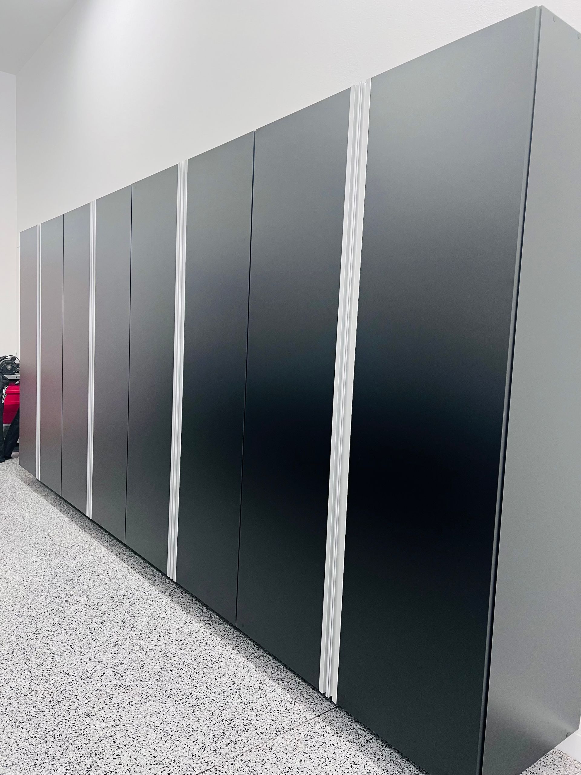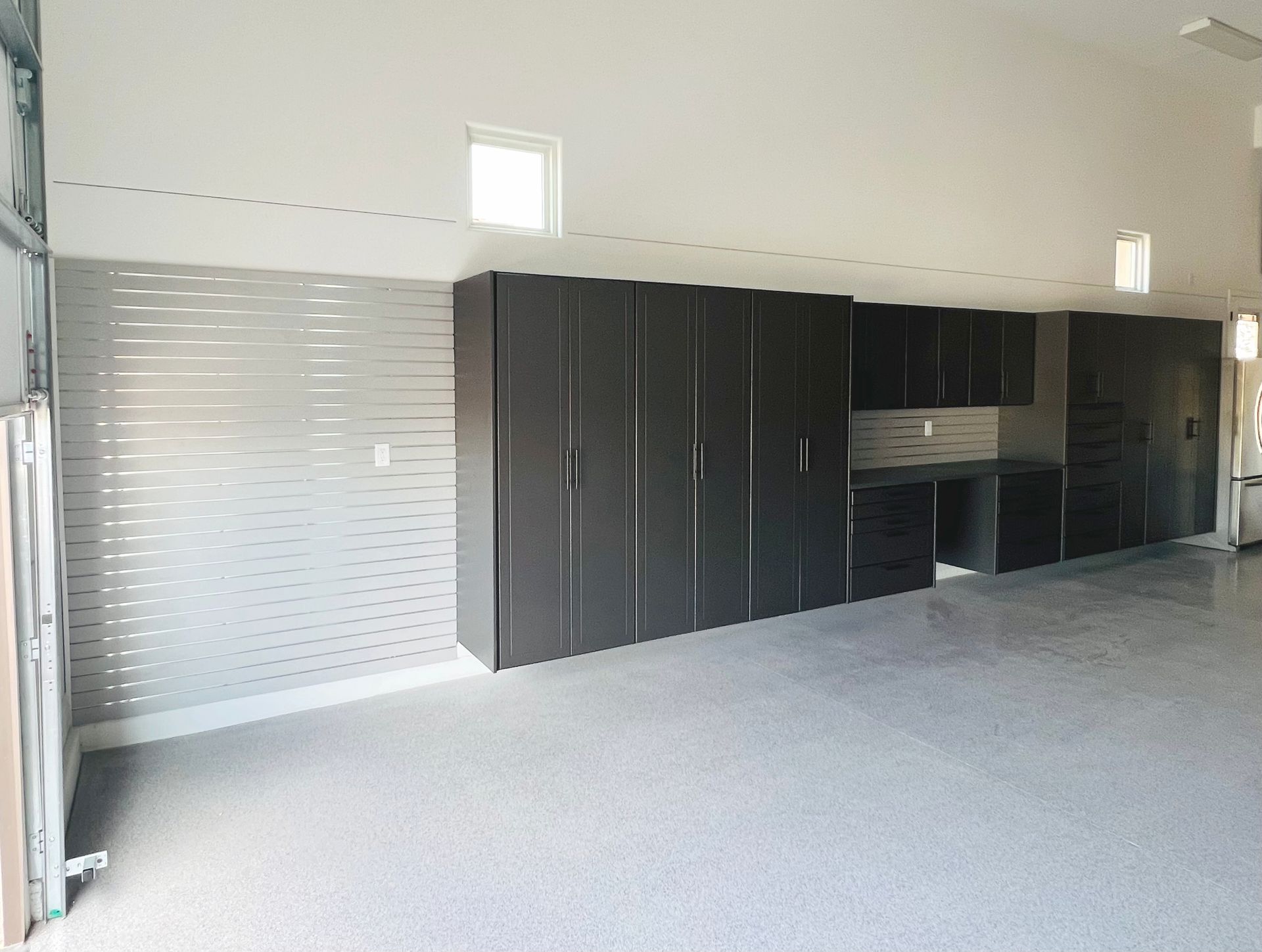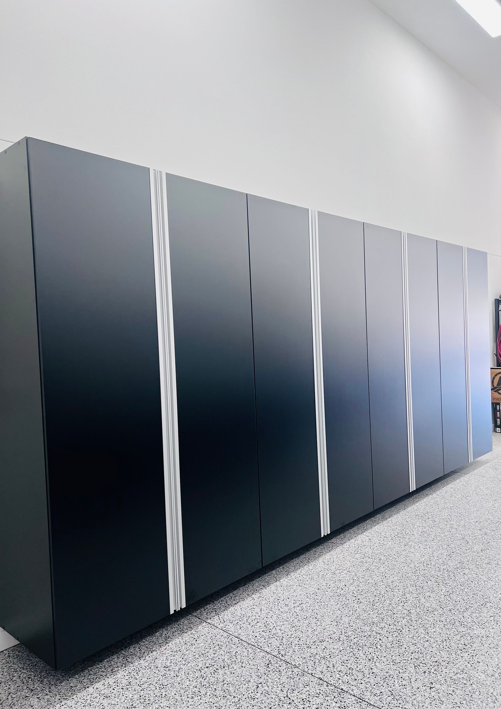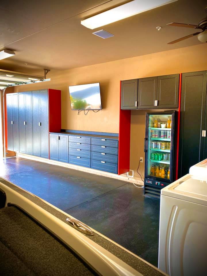 We offer many different types of systems to help you get and stay organized with your garage or space, along with many different cabinet configurations made out of wood or metal, LED lighting, overhead racks, Slatwall.