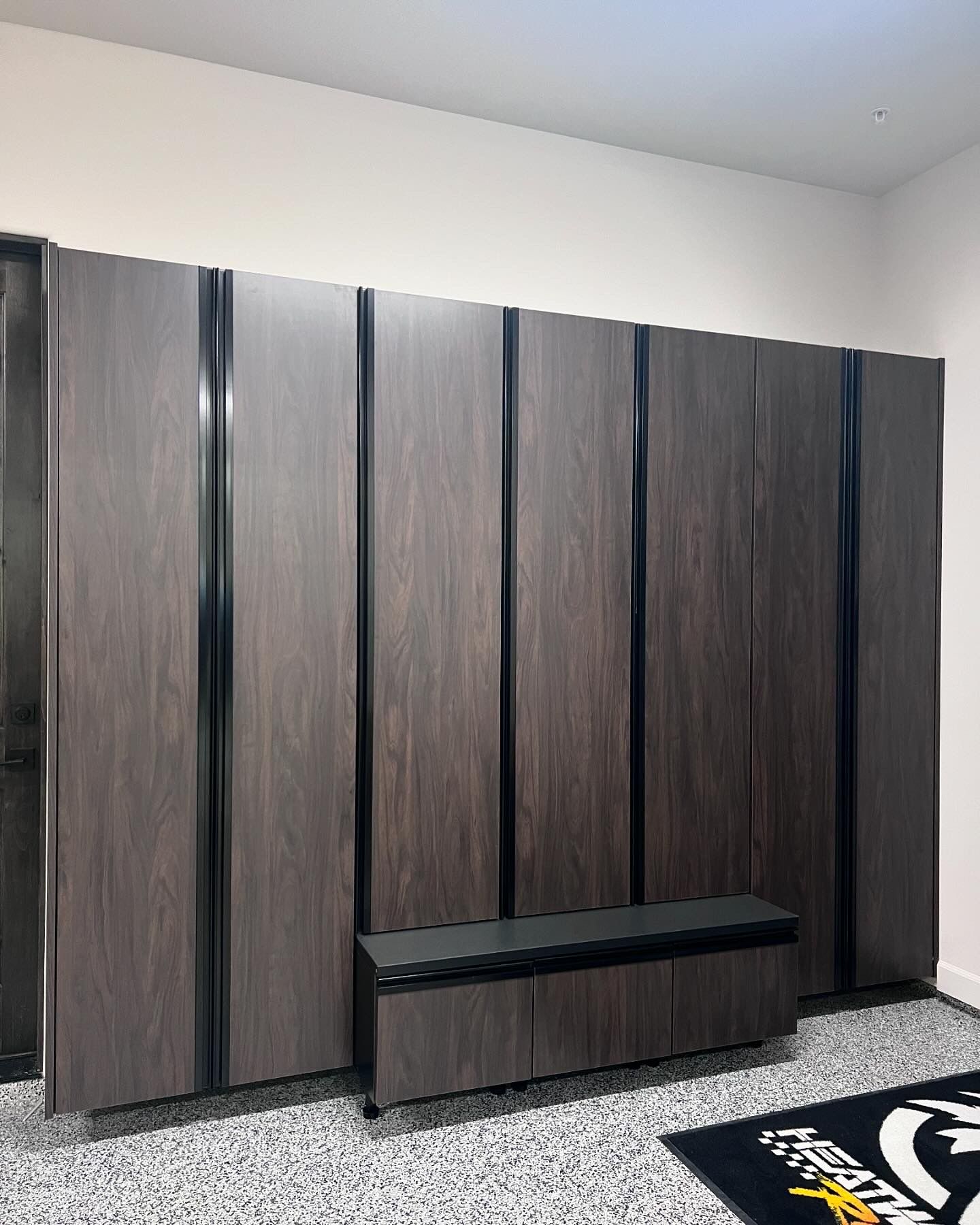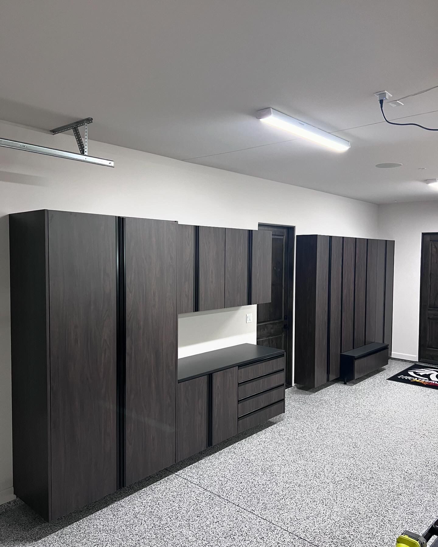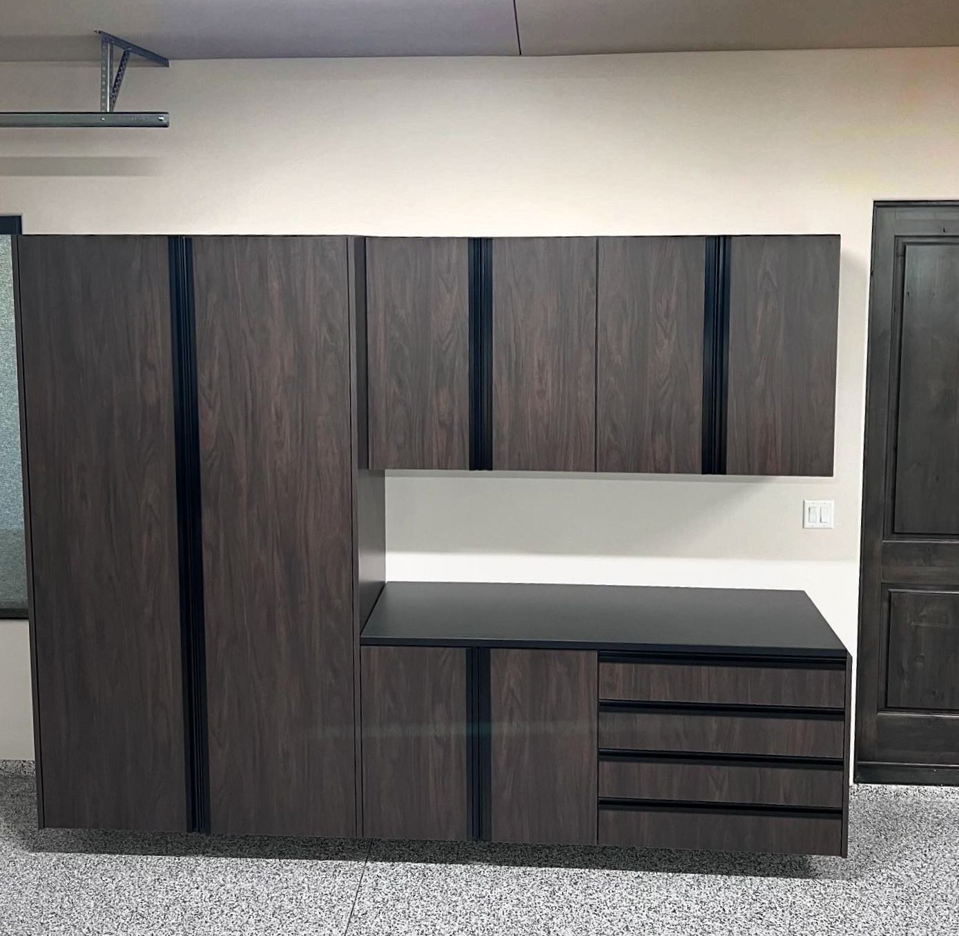 We offer many different types of systems to help you get and stay organized with your garage or space, along with many different cabinet configurations made out of wood or metal, LED lighting, overhead racks, Slatwall.